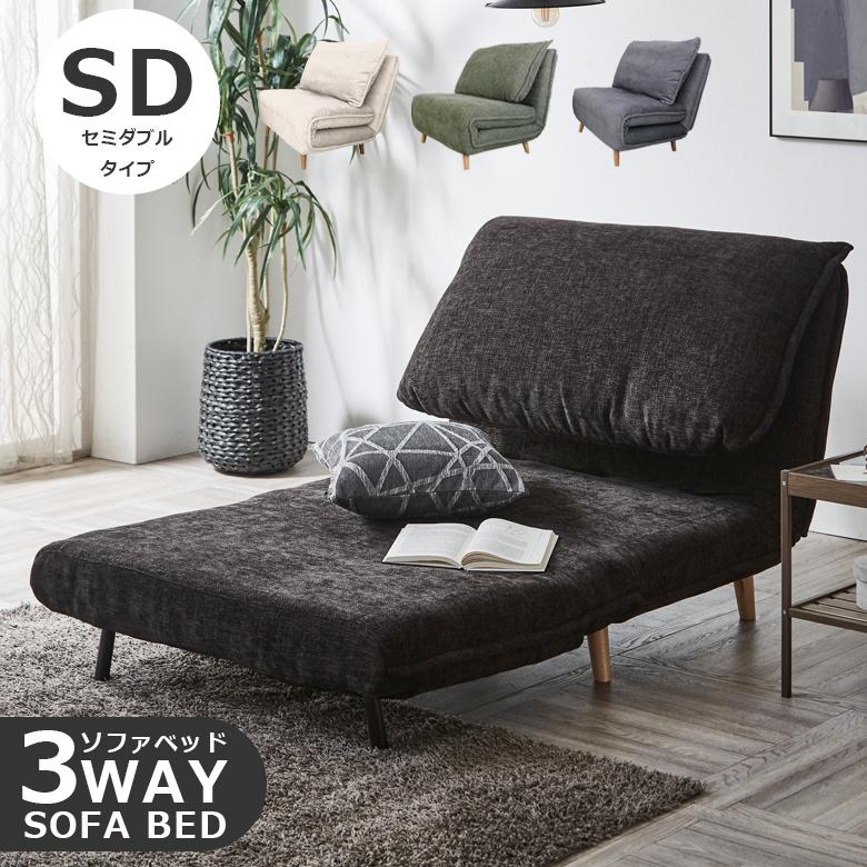 - ソファ・ソファベッド > ソファベッド > ①ゆったり3wayソファベッド 幅120cm ファブリック セミダブル ネイビー 未来商会 ソファーベッド セミダブル 幅120cm おしゃれ 北欧