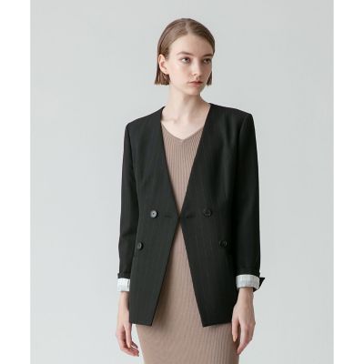 - レディース > ジャケット・アウター > 【美品】アルアバイル ノーカラー ピンストライプカラーレス ジャケット ピンストライプカラーレスジャケット | allureville (Women