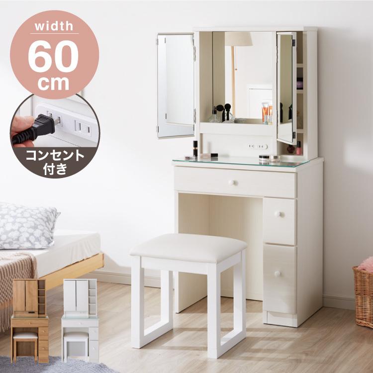 - リビング収納 > ドレッサー・鏡台 > 北欧風ナチュラル ドレッサー イス、ミラー、収納、コンセント付き 化粧台70cm 北欧風ナチュラル ドレッサー イス、ミラー、収納、コンセント