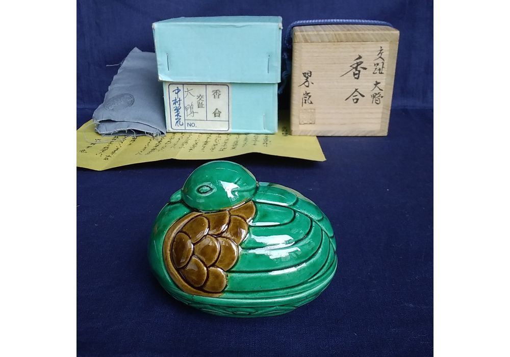 - 美術品・アンティーク・コレクション > 工芸品 > 茶道具 香合 中村翠嵐 作 交阯 大鴨 表千家 裏千家 【匿名配送】 中村翠嵐 交趾大鴨香合 | 久留米で話題を呼んでいる古美術店は