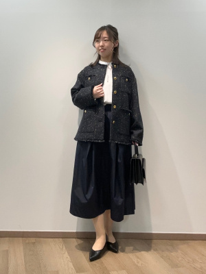 | メーカー | 美品 PLSTツイードノーカラージャケット 濃紺 PLST】新品タグ付き |