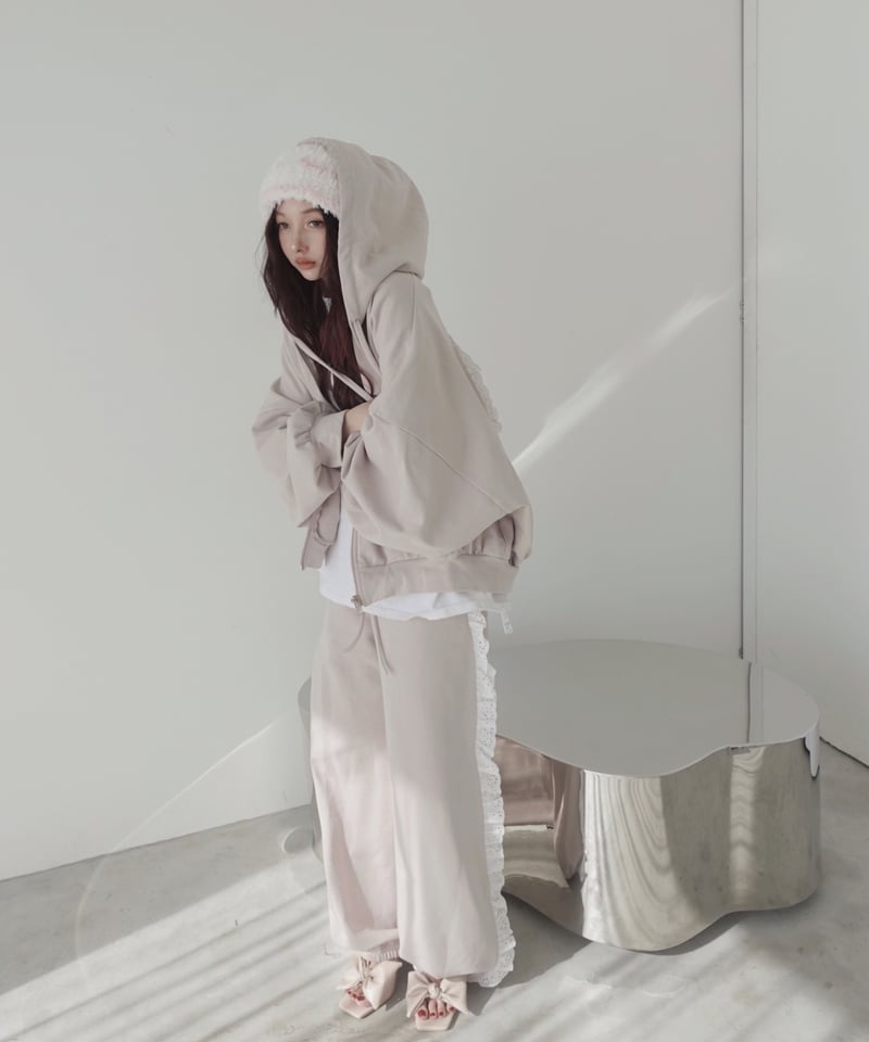 トップス fiction tokyo Heart Zip-up Hoodie PinkBeige】ハートジップアップフーディー /Heart Zip-up Hoodie