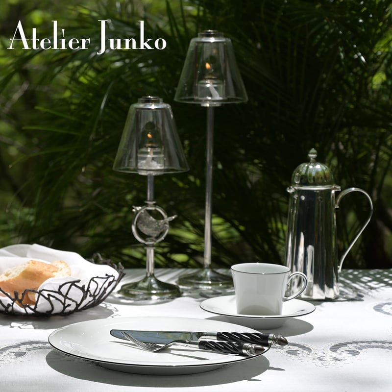 - ライト・照明 > その他 > アトリエジュンコ キャンドルホルダーホワイト&ティーキャンドルスタンド Lサイズ ティーキャンドルスタンド グラスシェード Candle Stand Glass