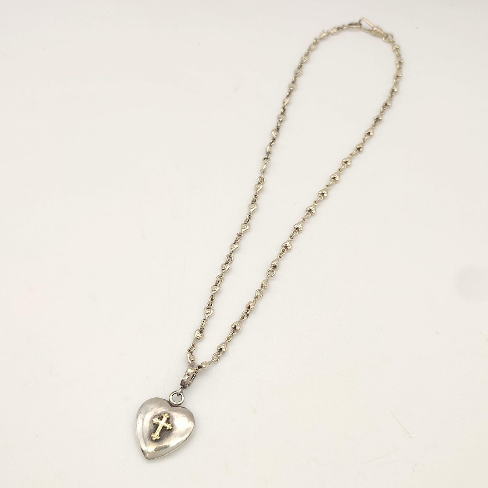| 商品の特徴 | ローリーロドキン ハートクロスネックレス シルバー925×18K。ローリーロドキン ハートクロスネックレス シルバー925×18K。正規良 希少 Loree Rodkinローリーロドキン ゴシック オープン。シルバーのクロスとハートのペンダントが特徴のネックレス。AVALANCHE シルバー フィガロネックレス 4.5mm 60cm 喜平。正規良 希少 Loree Rodkinローリーロドキン ゴシック オープン。- 素材: シルバー- デザイン: クロスとハートのペンダント- チェーンのスタイル: リンクチェーン- 装飾: ストーン付きのクロス- ハートのデザイン: メッシュ状のハート型中古品の為ご理解ある方お願いします!箱等付属品ありませんのでお値下げ講習承ります!ご覧いただきありがとうございます。 | ||