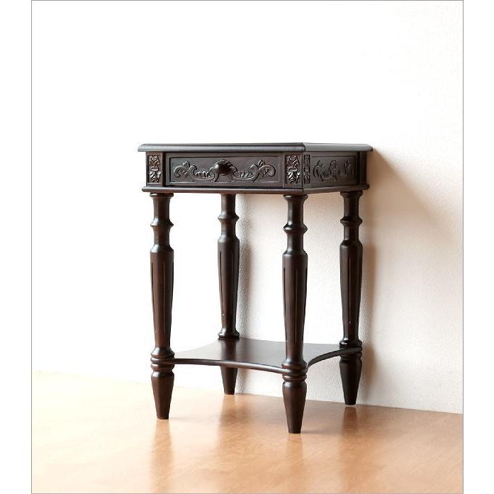 - 机・テーブル > サイドテーブル・ナイトテーブル・ローテーブル > 木製 小椅子 花台 サイドテーブル 引出し アンティーク 小机 台 棚 レトロ 花台 アンティーク サイドテーブル 木製 レトロ おしゃれ 花瓶台
