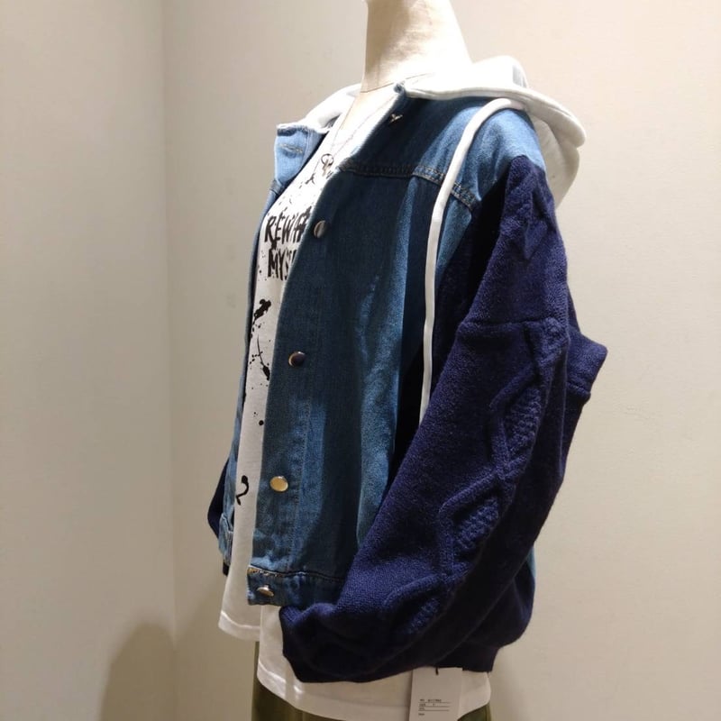- レディース > ジャケット・アウター > 【美品】ダイアグラム ケーブルニット 切り替え デニムジャケット 異素材 ケーブルニット×デニム切り替えフードジャケット | Toybox STORE