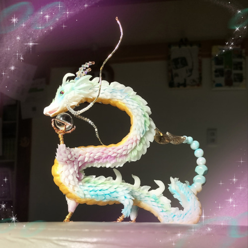 | 商品の特徴 | 水晶 と龍の置物 縁起物 オブジェ 新出発 干支の置物 その他置物。親子 龍の置物新出発縁起物 オブジェ。親子 龍の置物新出発縁起物 オブジェ。親子の緑龍は、パワーストーンを探しに森の中を旅しています。親龍が見つけたのはピンク水晶「ローズクォーツ」とも呼ばれ、愛や美、調和を象徴するパワーストーンとして知られています。子龍が持っているのはレッドアゲート(赤瑪瑙)、このストーンの石言葉は、「情熱」「勇敢」「生命力を高める」「子宝」「恋愛成就」「絆」などがあります。緑と青の美しいドラゴンの立体オブジェ、細かいスケール模様とビーズ装飾が特徴。- 色: 緑、青、ピンク- 素材: 樹脂、ビーズ、金属- デザイン: ドラゴンと小ドラゴンの立体オブジェ- 特徴: 細かいスケール模様と装飾的なビーズ- サイズ: 親龍…高さ14cm横約18cm、ピンク水晶14mm小龍…約9cm横11cm レッドアゲート12mm#風水 #龍の置物 #一点もの#辰の置物ご覧いただきありがとうございます。。桜龍の親子 辰の置物 桃の節句 その他置物 keokeo 通販 17174419。カイボイスン KAY BOJESEN DENMARK SONG BIRD。MINTON イタリア カポディモンテ フィギュリン 陶器人形 美術品。ヘレンド ドッグ。〈専用〉《英国製》イギリスの 〈タペストリー〉フャイヤー・スクリーン | ||