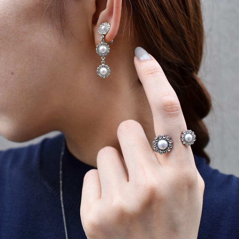 メアリー・フランク 直筆サイン『FLOWERS Ⅱ』モノタイプ 0317M silver flower motif double ring | ISRIE