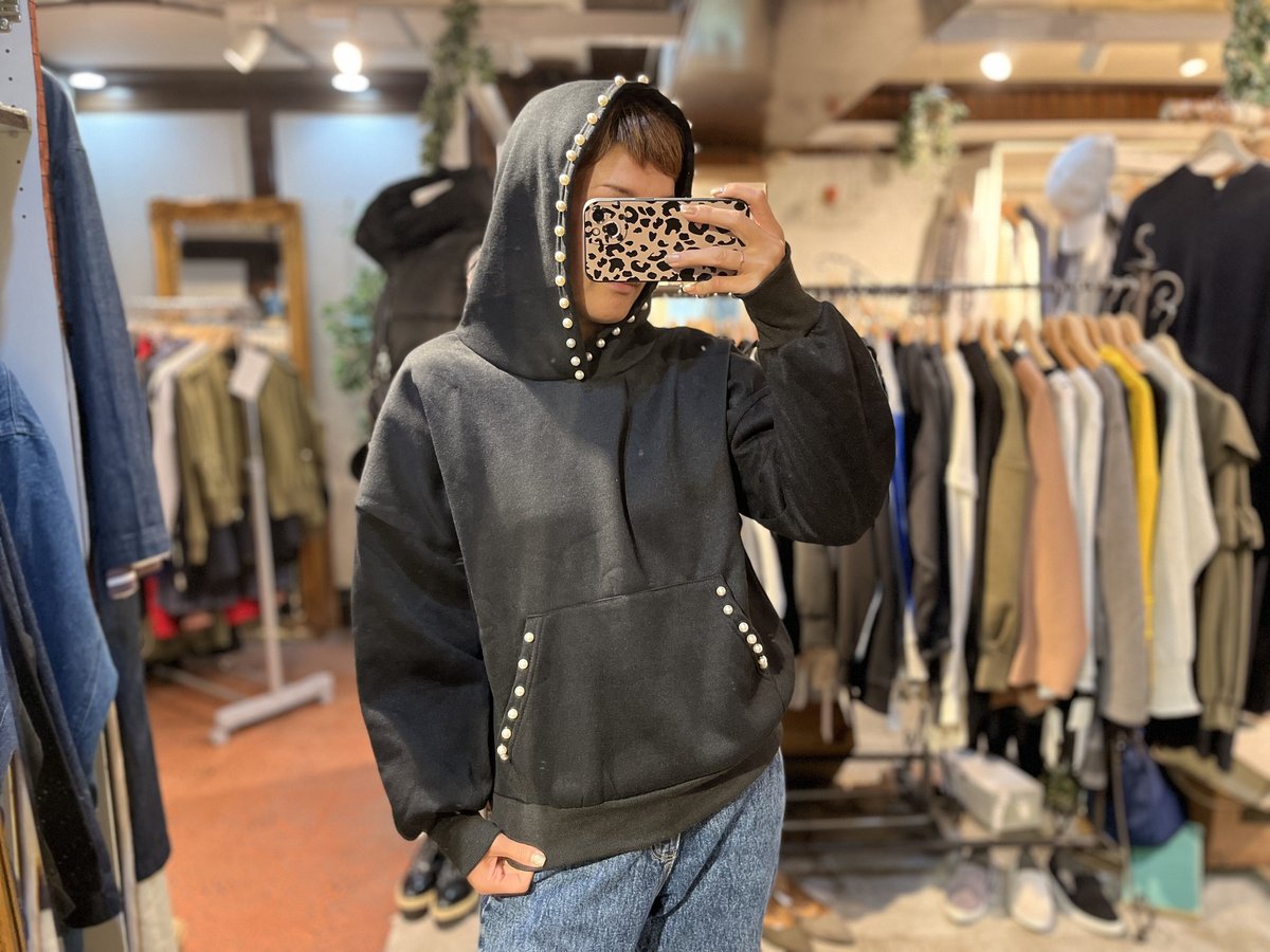 | メーカー | パール装飾フード付きパーカー 黒 |