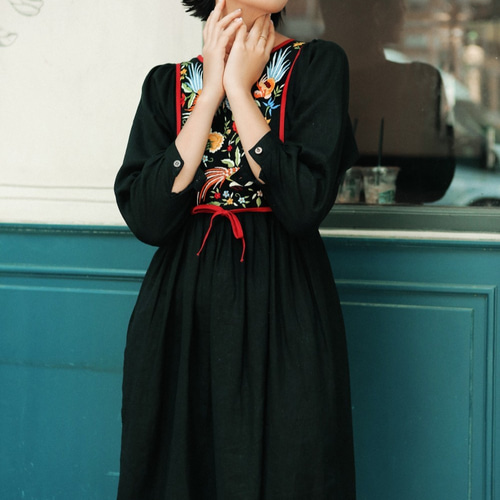 - レディース > ワンピース > 【美品✨】トッカ FLORAL BOUQUETドレス 刺繍 ワンピース 黒 M Black linen dress front embroidery、黒。ワンピース。手刺繍