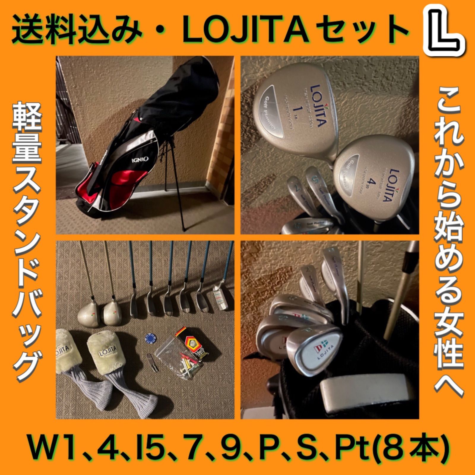 | 商品の特徴 | ④送料込み・LOJITAのクラブでゴルフの素晴らしさを手軽に体験。Golf Planner LOJITA レディース ゴルフクラブ セット - メルカリ。ゴルフクラブフルセット|レディース向け!人気ブランドのゴルフ。★【商品】LOJITA ロジータ 他レディース ゴルフ クラブ セット 12点 初心者 入門 ビギナー【セット内容】・ドライバー/ウッド3本(1W・4W・5W)・アイアン/ウェッジ 7本(5・6・7・8・9・PW・SW) ・パター(メーカー:Golf Planner)・利き手:右・FLEX:L【付属品】・キャディバッグ (メーカー:LAEVIS)--*--*--*--*--*--*--*--*--ご覧頂きありがとう御座います。これからゴルフを始めたいと思われてる初心者の方にピッタリなセットでございます♪初心者の方でもすぐに練習場やゴルフコースでご利用頂ける商品です。キャディバッグの胴体にやや白い汚れがあります。※色味、外装など商品の評価は主観的な内容となります。汚れなど取りきれないものもある場合が御座いますので、予めご了承ください。状態、付属品等、現物優先となります。こちらの商品は1点ものになります。また、譲り受けた物の為、購入時期、使用頻度なども分かりかねますので、予めご了承下さい。配送業者の指定は致しかねますので、予めご了承ください。>> #fantasyの出品ページはこちら040234900003。④送料込み・LOJITAのクラブでゴルフの素晴らしさを手軽に体験。事前にプロフの確認もお願い致します。TaylorMade Burnerシリーズアイアン 5.6.7.8.9.P。【中古美品】SRIXON ZX4 MKⅡ 5番アイアン 950GH NEO R。この機会に是非お買い求め下さい。X391 Callaway TourEdge メンズ ゴルフ クラブ フルセット。テーラーメイド MILLED GRIND2 TW 56度 60度 タイガーウッズ。全体的に使用による擦れや傷、汚れ等ありますが、まだまだご利用頂ける商品となります。GLOIRE+ ドライバー 10.5° カーボンウッド。ウェッジ Callaway Mack Daddy3 52 56 60 3本セット。弊社女性スタッフによる簡易清掃となります。Gsh-352 Diamana シャフト単品 DF60 flexS スリーブ付。TaylorMade Stealth ドライバー ヘッドカバー付き。シビアなコンディション、状態等、完璧を求められる方はご入札をご遠慮下さい。IGNIO メンズゴルフクラブセット 9本セット FLEX-R 初心者セット。本格派 レディースゴルフクラブ 12本 セット PRGR テーラーメイド。購入後の返品、クレームについてルールに則り対応させて頂きますので中古品である事をご理解の上ご購入下さい。PARADYM AiSMOKE HL 4 ユーティリティ ヘッド。コブラ キング KING RADSPEED XB ドライバー 10.5°ヘッド。専門的なご質問、及び商品説明欄に記載していない型式、型番、年式などは、当方では分かりかねます。ツアー支給品 名器 TaylorMade M2 FW 3HL 16.5° 希少。メンズ ゴルフフルセット 買い足し不要 即ラウンドOK 送料込み 右。【発送方法】ヤマト運輸、もしくは佐川急便にてお送り致します。ODYSSEY TRI-BEAM #7 CS 33インチ 純正ヘッドカバー付き。the attas 6x ドライバー用 実寸1106mm。※沖縄、離島の方は別途送料がかかりますので、ご購入前にコメントください。◆テーラーメイド M4 ユーティリティ◆U5◆25度◆テンセイ 60 S◆ | ||