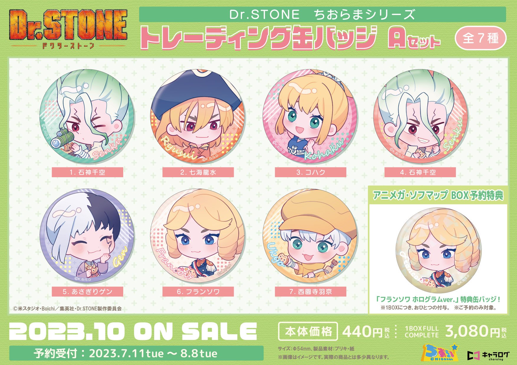 - キャラクターグッズ > ピンズ・ピンバッジ・缶バッジ > Dr.STONE 七海龍水 ソフマップ アニメガ 缶バッジ 特典ポストカード ① Dr.STONE 七海龍水 ソフマップ アニメガ 缶バッジ ドクター