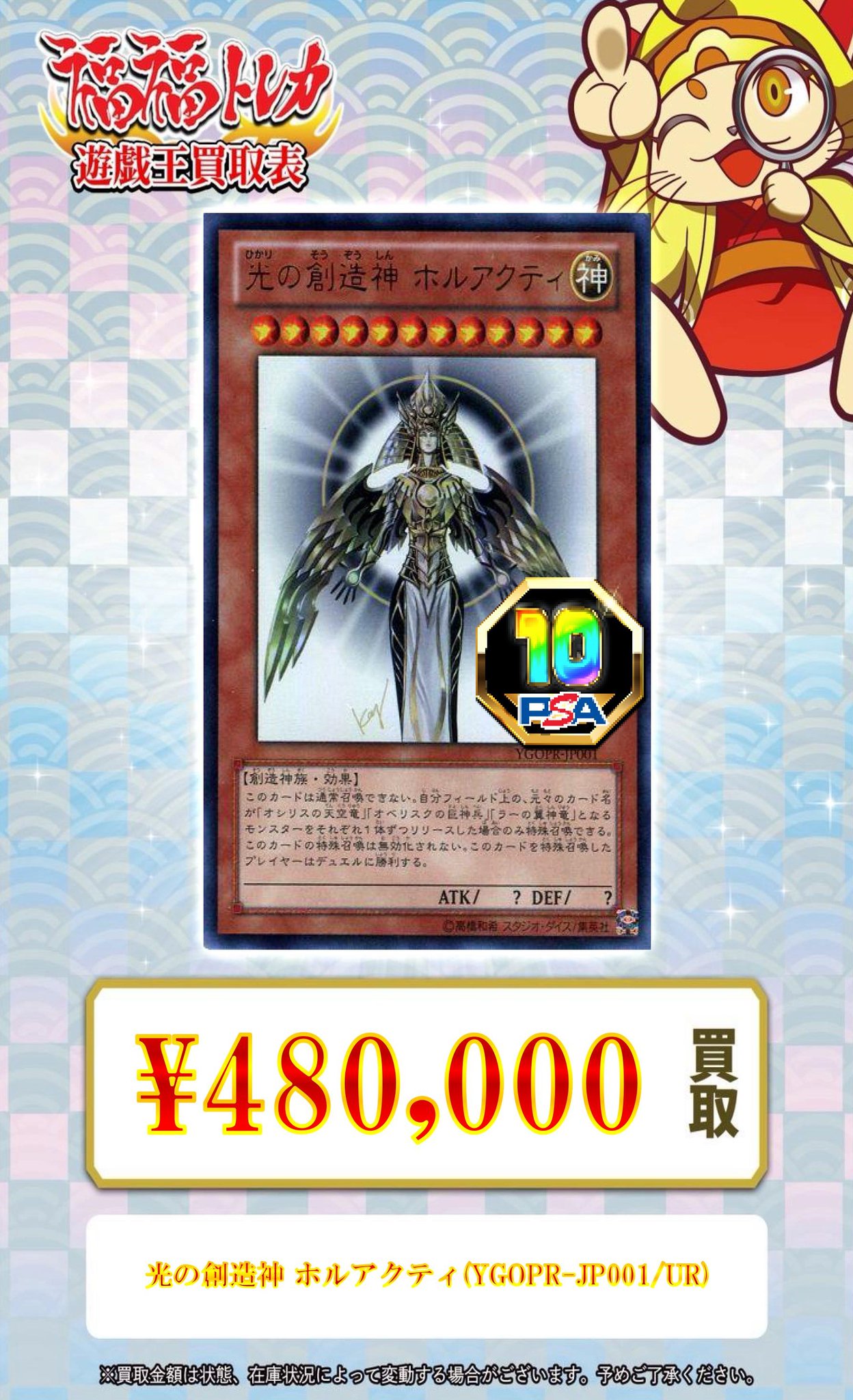 | 商品の特徴 | ホルアクティ PSA8 遊戯王 福福トレカ 遊戯王 on X:。遊戯王 光の創造神 ホルアクティ PSA 鑑定品|Yahoo!フリマ(旧。2025年最新】ホルアクティ psaの人気アイテム - メルカリ。光の創造神ホルアクティ PSA8自分で日本支社に鑑定に出し保管しておりました。必要であれば画像追加します。何か質問あれば宜しくお願いします。2025年最新】光の創造神ホルアクティの人気アイテム - メルカリ。画像を確認して購入お願いします。遊戯王 レアコレ 25th 5箱 シュリンク付き。《極美品》 トライホーン・ドラゴン 【初期ウルトラ】 希少。購入後の返品は承りませんので宜しくお願いします。遊戯王 三幻神 プリズマ BGS10 オシリス オベリスク ラー V1。正月限定最終値下げ ブラックマジシャンガール PSA10。カード種別···モンスターカードカード種類···効果モンスター属性···光属性種族···創造神族レベル···レベル12レアリティ···ウルトラレア種類···特典/配布/その他 | ||